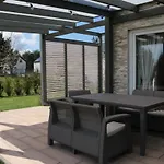 Niebieskie Drzwi Kopalino Villa, som ligger ungefär 25 minuters gångavstånd från Plaza w Lubiatowie, har en terrass med utsikt över trädgården.